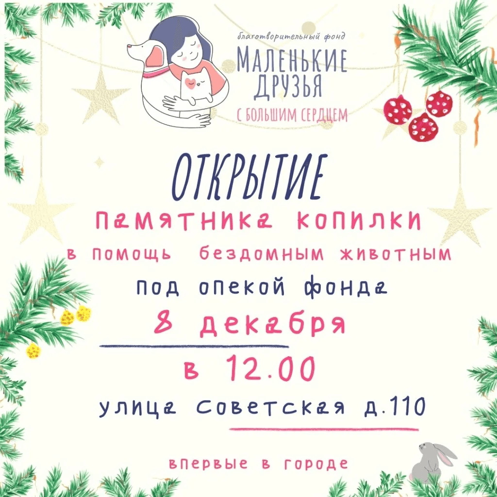 8 декабря в Йошкар-Оле откроется памятник-копилка в поддержку фонда "Маленькие друзья с большим сердцем". Он будет установлен в центре города, у дома 110 на улице Советская, и открытие состоится в 12:00.