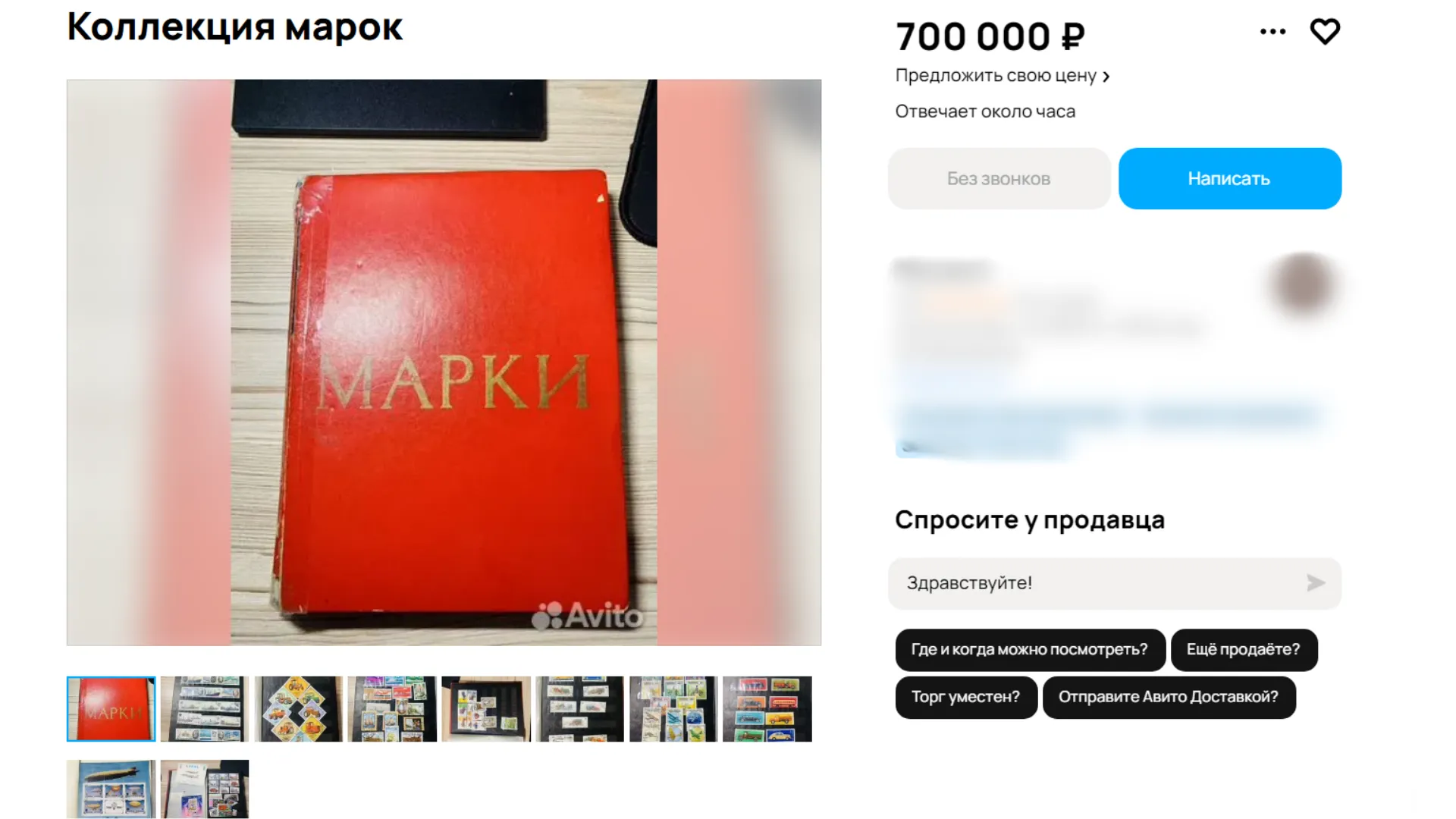 Далее идет Коллекция марок стоимостью 700 000 рублей