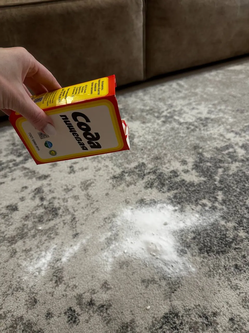 Ответ прост – сода. Да, обычная сода, которая есть у каждого на кухне. Процесс очень простой: рассыпьте соду равномерно на всю площадь ковра и оставьте на несколько часов, желательно минимум на 12.