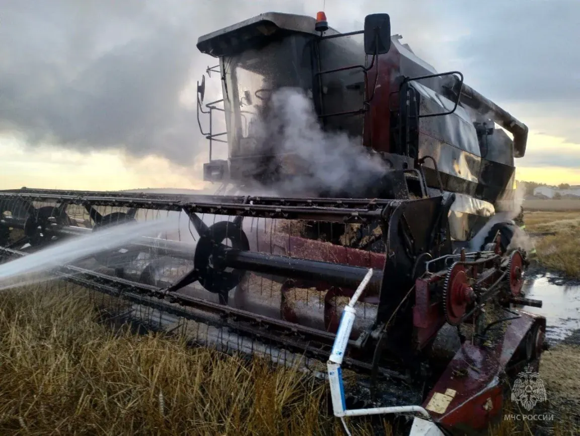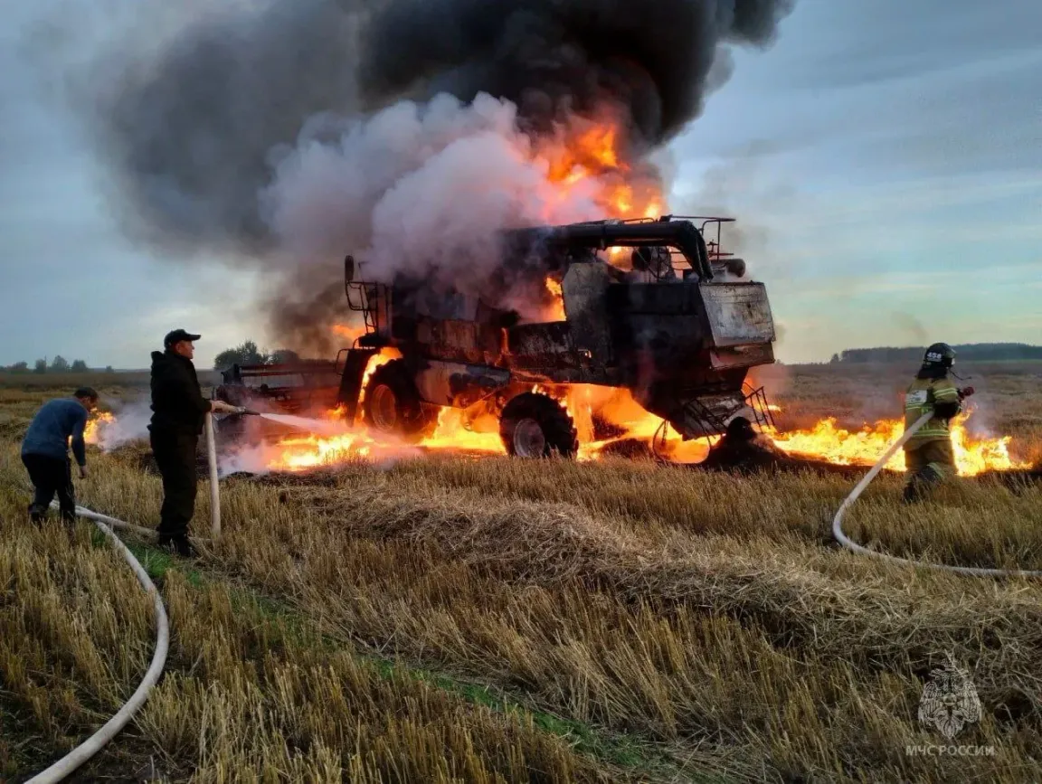 Мужчина остановил комбайн и благополучно покинул машину. Пламя начало быстро распространяться, поэтому он вызвал пожарных.