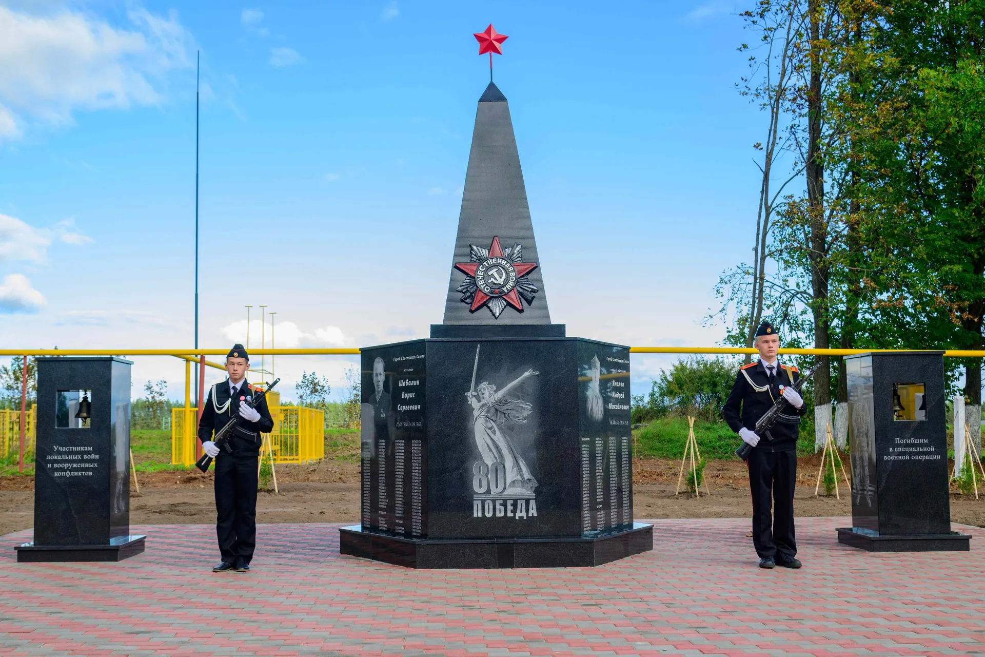 На мемориале увековечены имена участников Великой Отечественной войны, локальных конфликтов, а также тех, кто погиб в борьбе с нацизмом в ходе специальной военной операции. Во время церемонии с участием ветерана СВО Евгения Геннадьевича Таникеева к памятнику возложили цветы, а ему вручили икону как символ благословения и защиты.