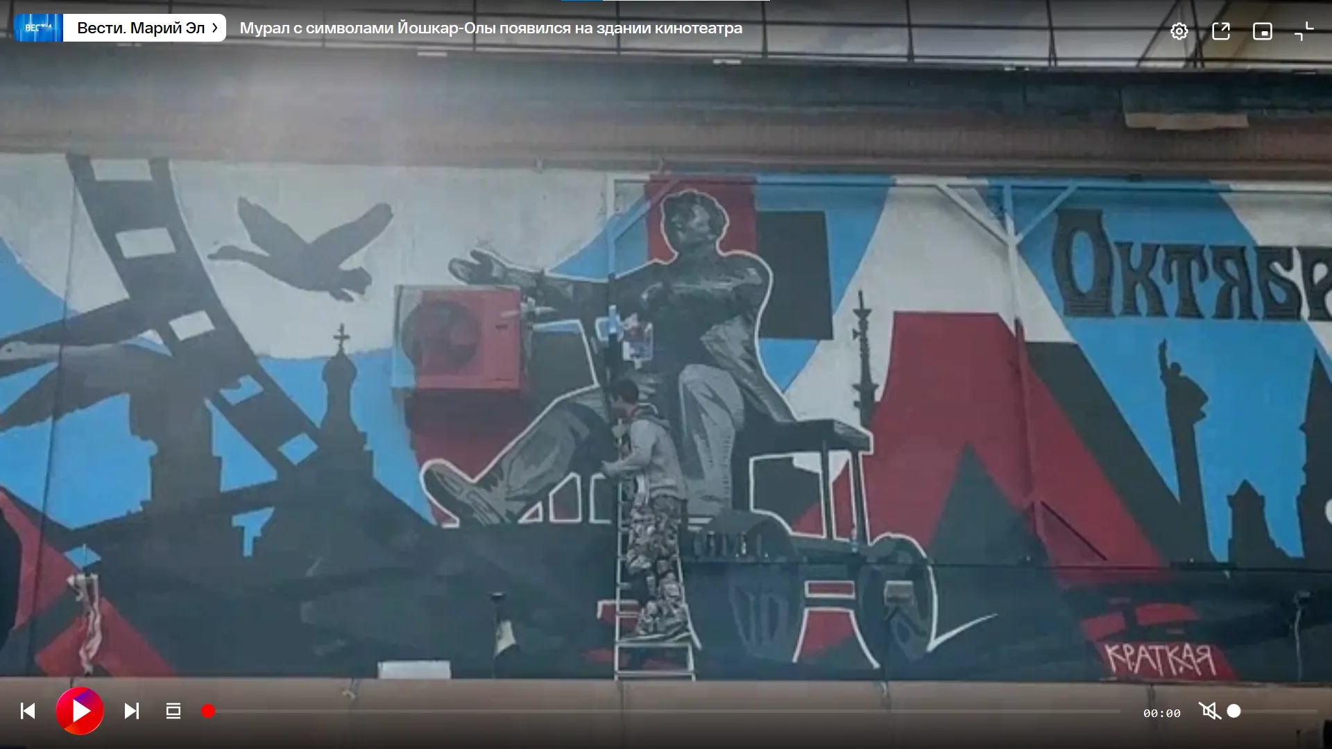 В Йошкар-Оле появился новый арт-объект — большой мурал на стене здания кинотеатра «Октябрь». Создали яркие граффити художники Никита Решта и Дамир Мавликеев. Этот проект стал возможен благодаря инициативе дирекции кинофестиваля «И КРАТКАЯ», который проходил именно в этом кинотеатре. Во время фестиваля здесь организовывались бесплатные показы фильмов-участников, а новый мурал стал своеобразным символом и украшением места проведения мероприятия.