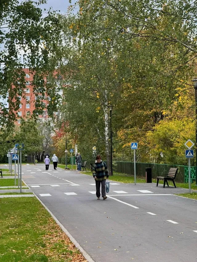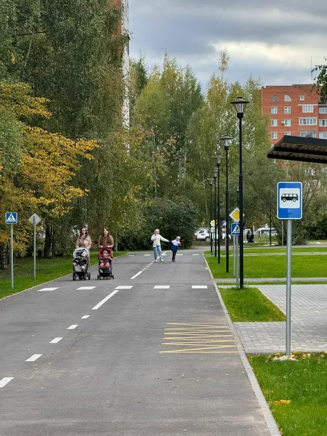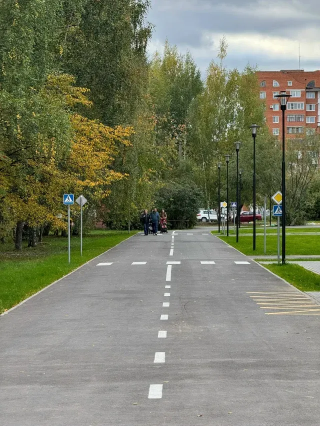 Подрядчики завершили обустройство проездов и парковок. На территории установлены дорожные знаки, светофоры, урны и скамейки для отдыха.