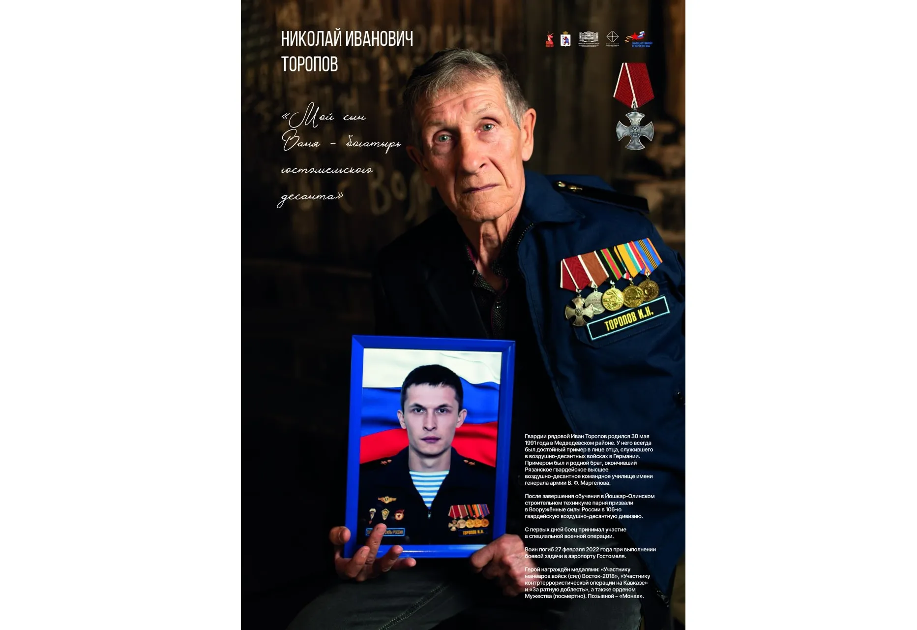 Гвардии рядовой Иван Торопов родился 30 мая 1991 года в Медведевском районе Марий Эл. Он вырос на примерах отца, служившего в воздушно-десантных войсках в Германии, и старшего брата, выпускника Рязанского гвардейского высшего воздушно-десантного командного училища имени генерала армии В.Ф. Маргелова.
