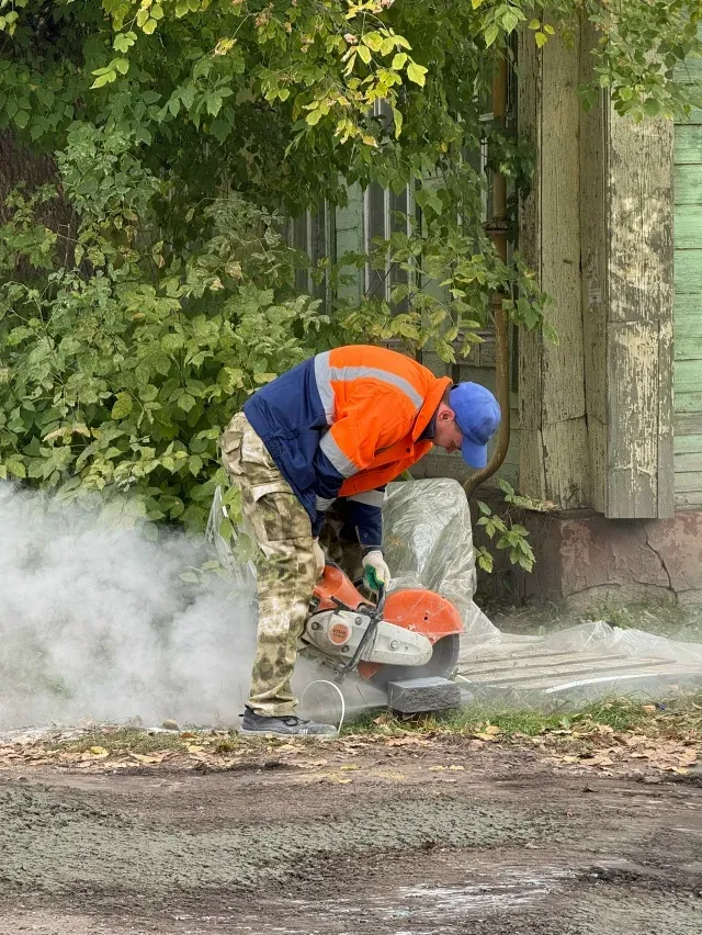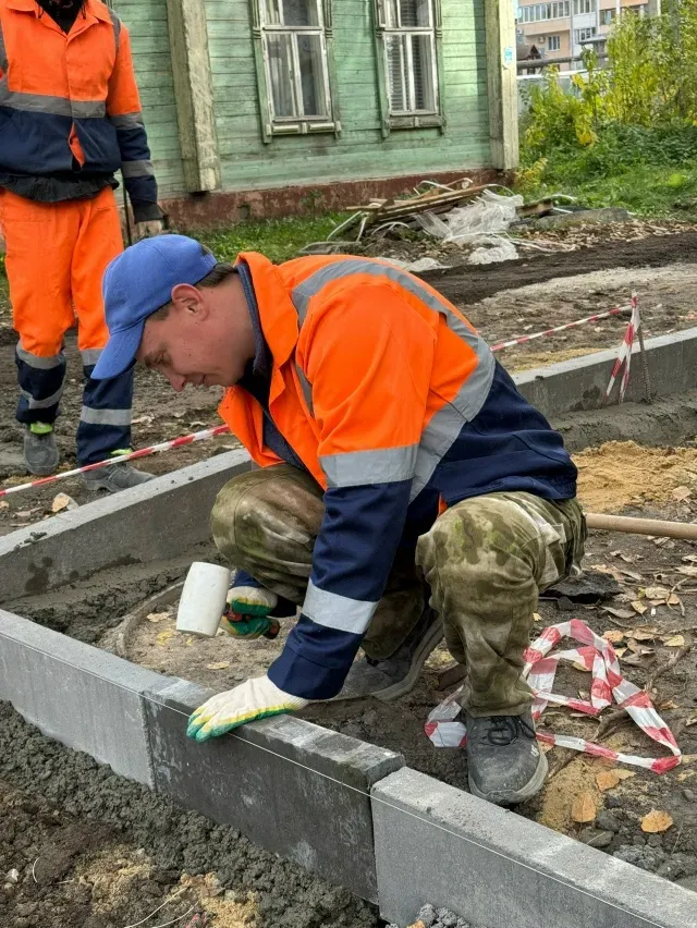 Теперь настала очередь благоустроить территорию вокруг. Один из главных запросов жителей — ремонт тротуара, ведущего к школе. Работы уже начались: дорожники устанавливают бортовой камень и формируют водоотводные уклоны.