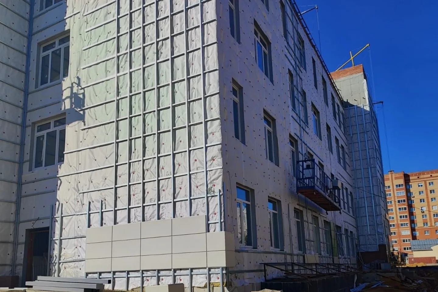 В настоящее время на объекте полным ходом идут внутренние и наружные работы. Строители монтируют перегородки, прокладывают инженерные системы, занимаются облицовкой фасада, устанавливают окна и двери, завершают монтаж кровли. Параллельно ведется благоустройство прилегающей территории и подключение здания к тепловым сетям. Отмечается, что благоприятные погодные условия способствуют работам по озеленению.