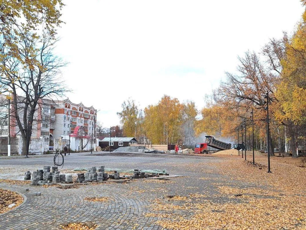 На данный момент уровень технической готовности объекта составляет 65%. Уже выполнены ключевые этапы: уложено покрытие из брусчатки, завершены фундаментные работы под навесы амфитеатра, оборудована спортивная площадка для старшего поколения с современными уличными тренажёрами, а также создана многофункциональная зона «Спортивное ядро» с установленными турниками и теннисными столами.