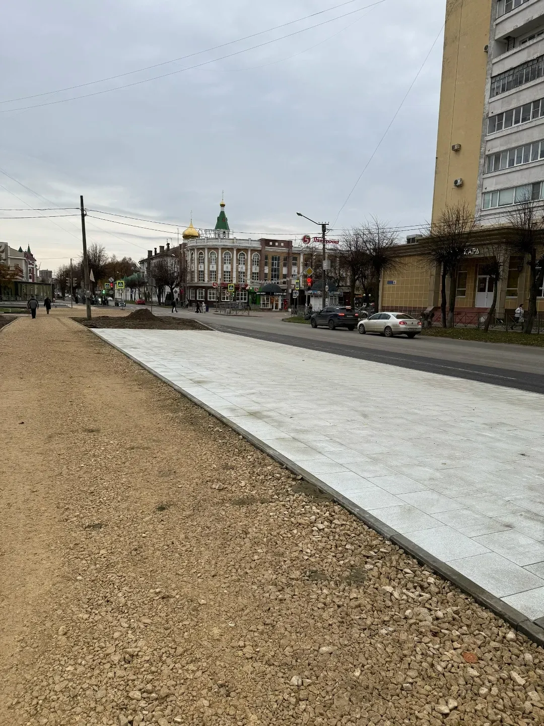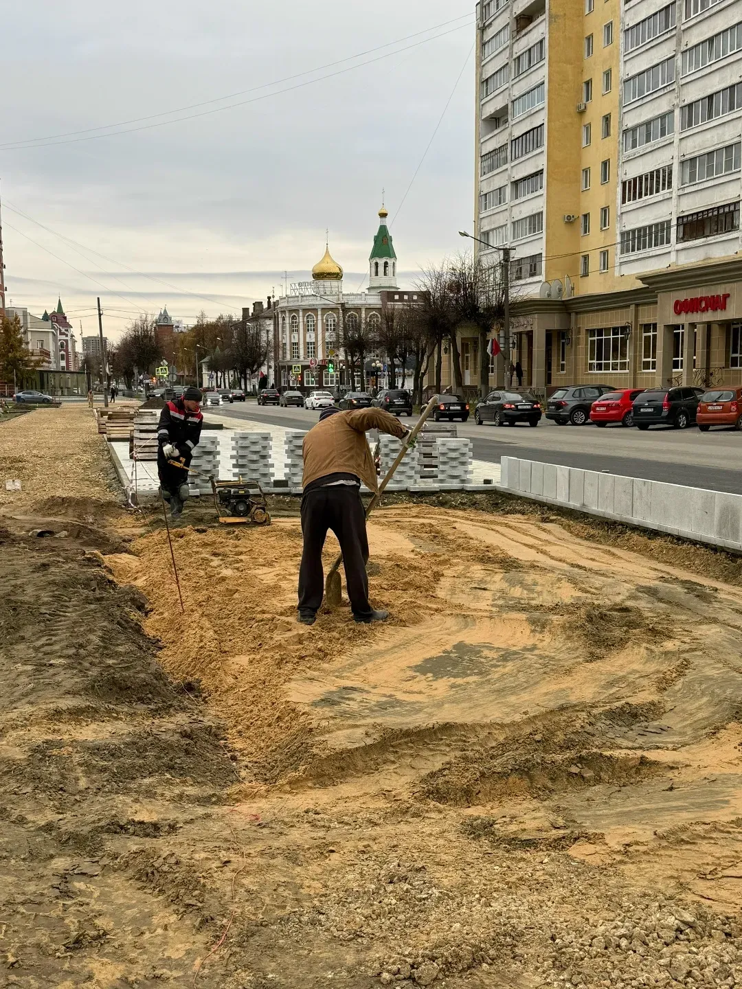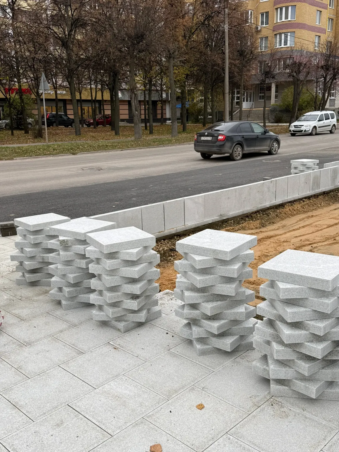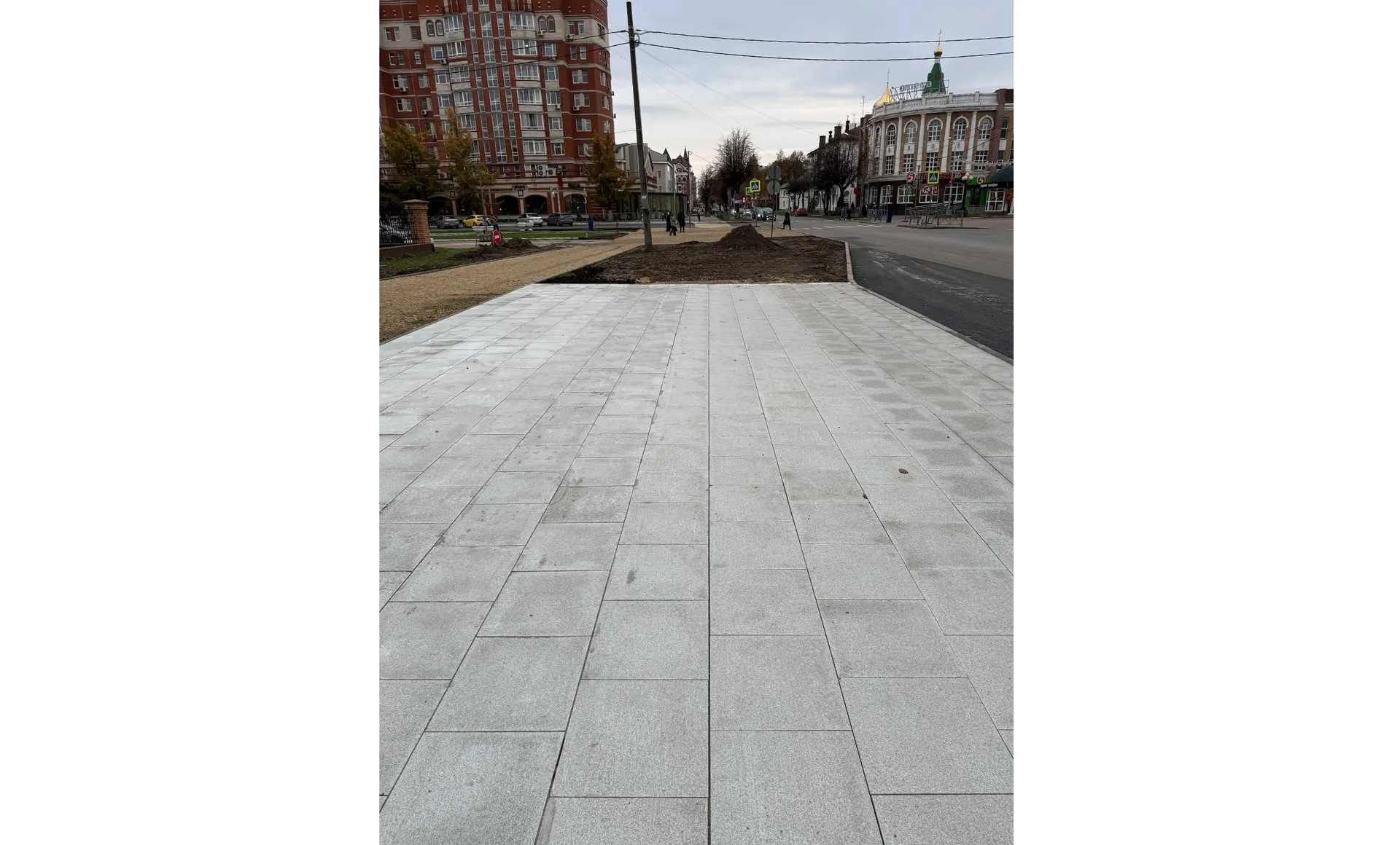 Сейчас подрядная организация сосредоточила внимание на благоустройстве пешеходной зоны вдоль улицы Вознесенской. Здесь укладывают гранитные плиты весом около 25–30 килограммов каждая — процесс трудоёмкий, но результат обещает быть впечатляющим.