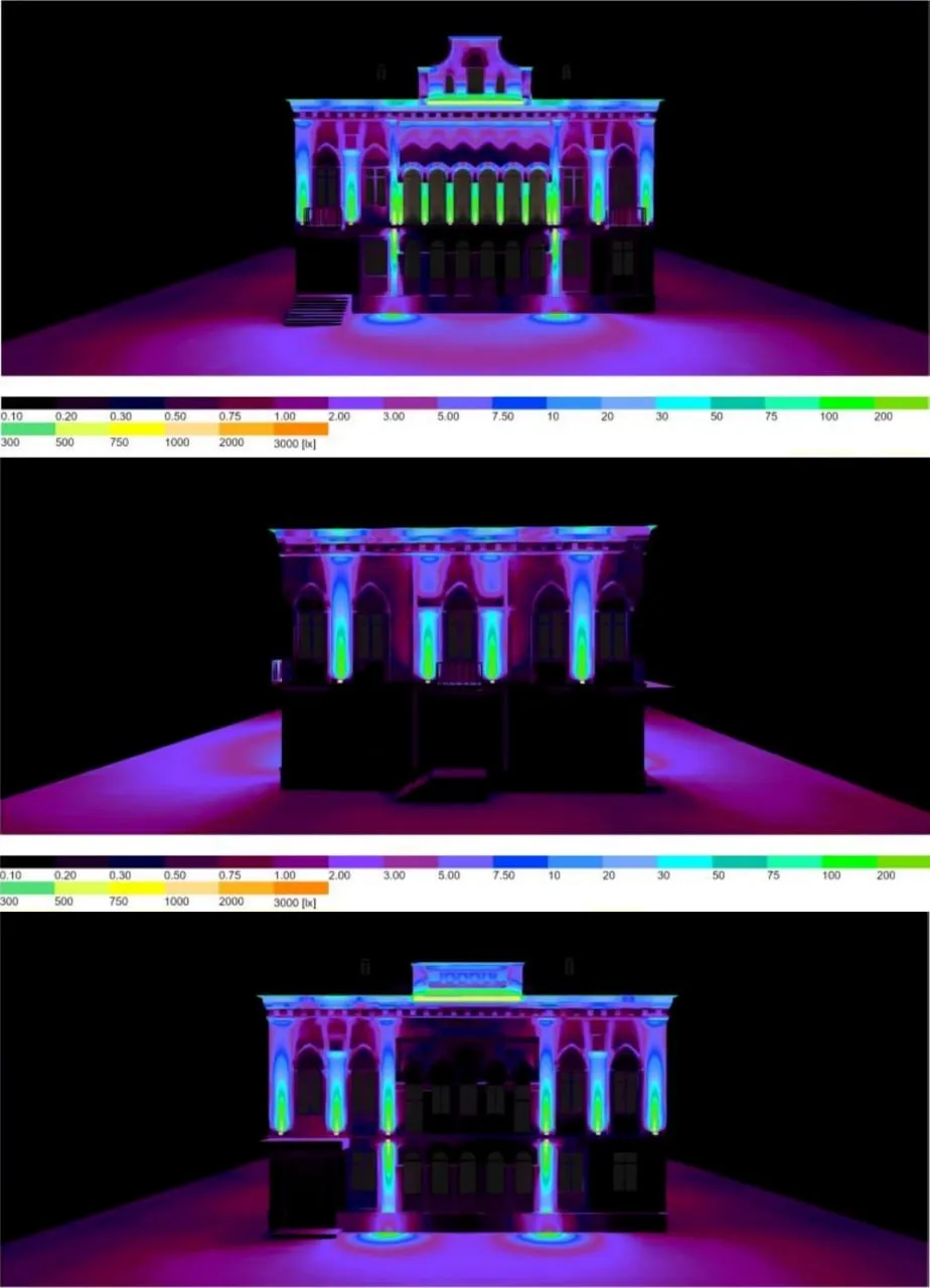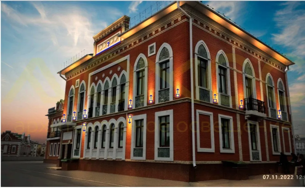 Для освещения фасада планируется установить 43 световых прибора: 7 из них выделят аркаду, 24 — простенки между окнами, а 12 — фронтон. Управлять всей системой будет автоматическое реле, запрограммированное на включение и выключение в зависимости от времени суток.