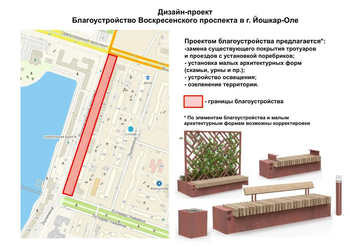 Объектом преображения выбран Воскресенский проспект в Йошкар-Оле — один из самых узнаваемых и любимых горожанами. Он стал победителем рейтингового голосования и будет благоустроен в 2026 году по федеральному проекту «Формирование комфортной городской среды».