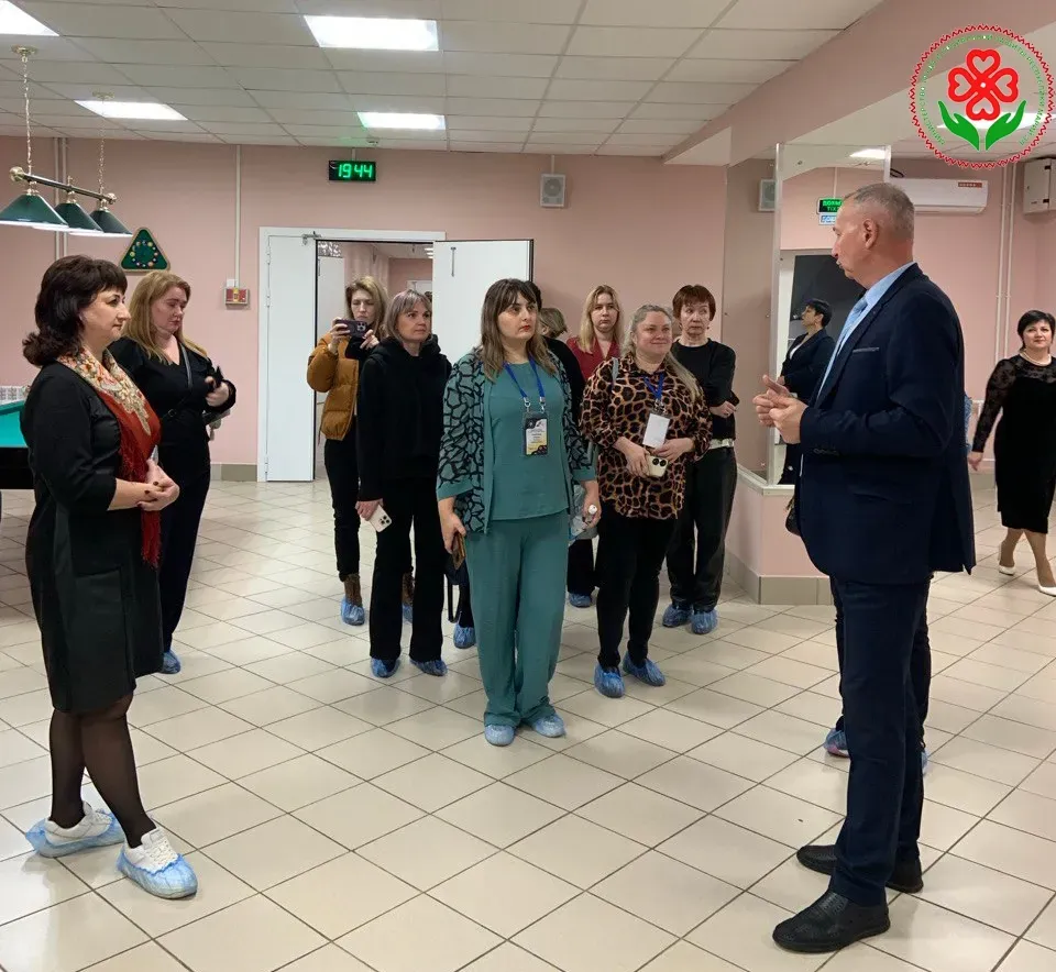 Экскурсию по учреждению провёл директор интерната Андрей Ермоленко. Он подробно рассказал о масштабной реконструкции, завершённой в 2024 году в рамках национального проекта «Демография».
