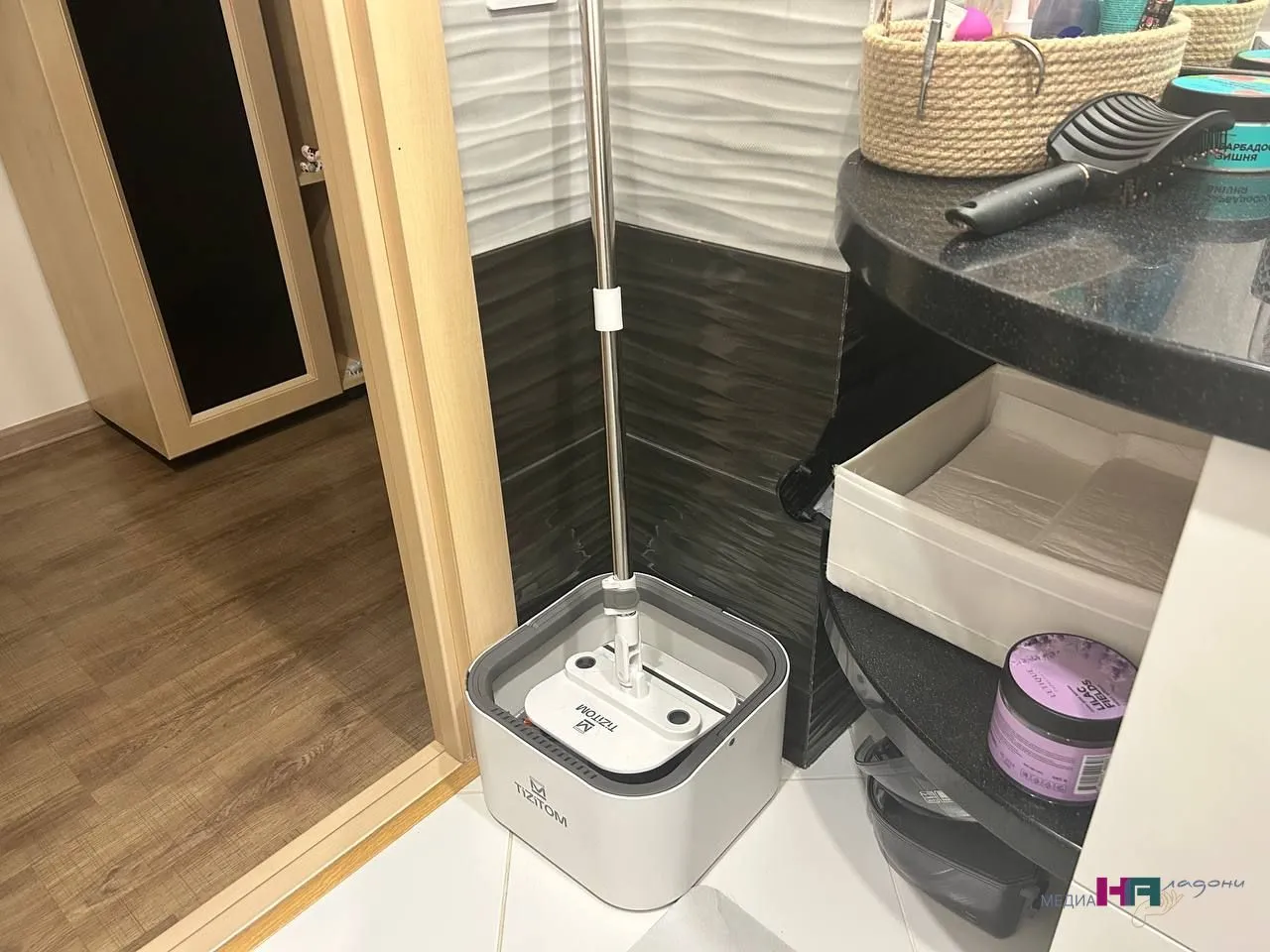 Вначале после переезда приходилось мыть полы вручную, что отнимало много времени и сил. В поисках более удобного варианта была приобретена швабра с ведром, оснащённая двумя отделениями: для чистой воды и для отжима, что значительно облегчило и ускорило процесс. Благодаря такому решению уборка стала проходить быстрее, а светлый ламинат позволял легко заметить даже незначительные загрязнения.