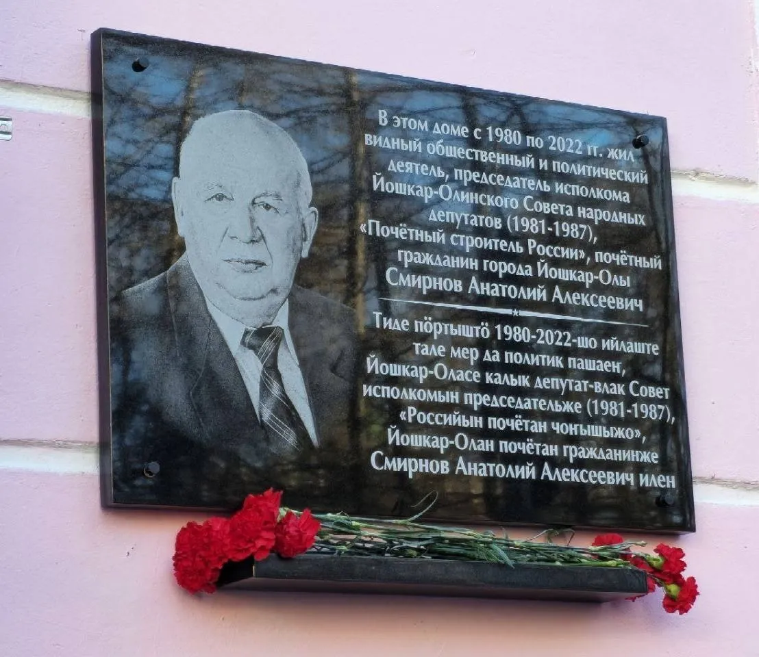 В столице Марий Эл прошла церемония увековечивания памяти Анатолия Алексеевича Смирнова. На торжественном мероприятии была открыта мемориальная доска, посвященная этому известному общественному и политическому деятелю.