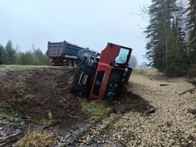 На трассе "Йошкар-Ола - Уржум" 27-летний водитель получил травмы при опрокидывании грузовика