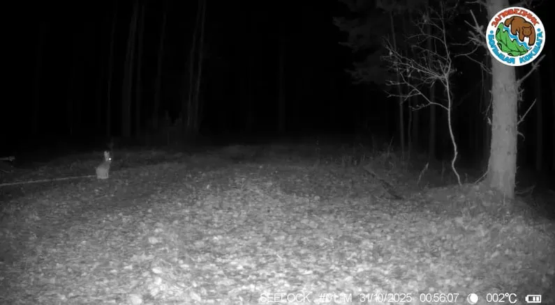 Фотоловушки заповедника "Большая Кокшага" подарили редкий кадр ночной жизни леса. В объектив попал заяц, осторожно выходящий на границу леса и поля. Он движется почти бесшумно, прислушивается к каждому шороху, а его глаза ловят даже слабый свет.