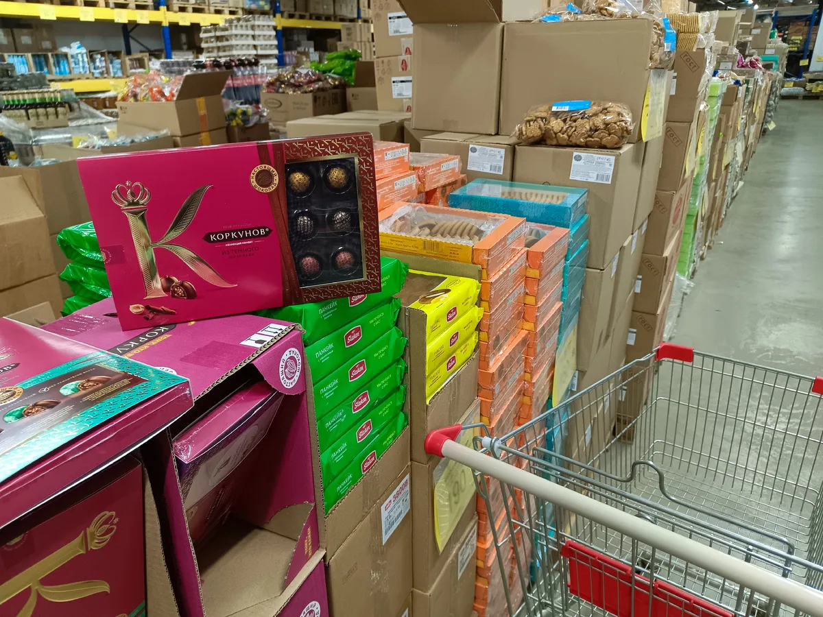 В разделе сладостей привлекают внимание конфеты Коркунов ассорти в подарочной упаковке весом 165 г — упаковка оформлена ярко и выглядит эффектно, а состав сочетает тёмный и молочный шоколад, ореховые нотки (фундук, грецкий орех, миндаль), вафлю и ореховые начинки со вкусами кленового сиропа и апельсина. Стоимость — 240 рублей.