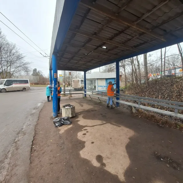 Рабочие Йошкар-Олы очистили остановки от надписей и занялись сезонной уборкой города