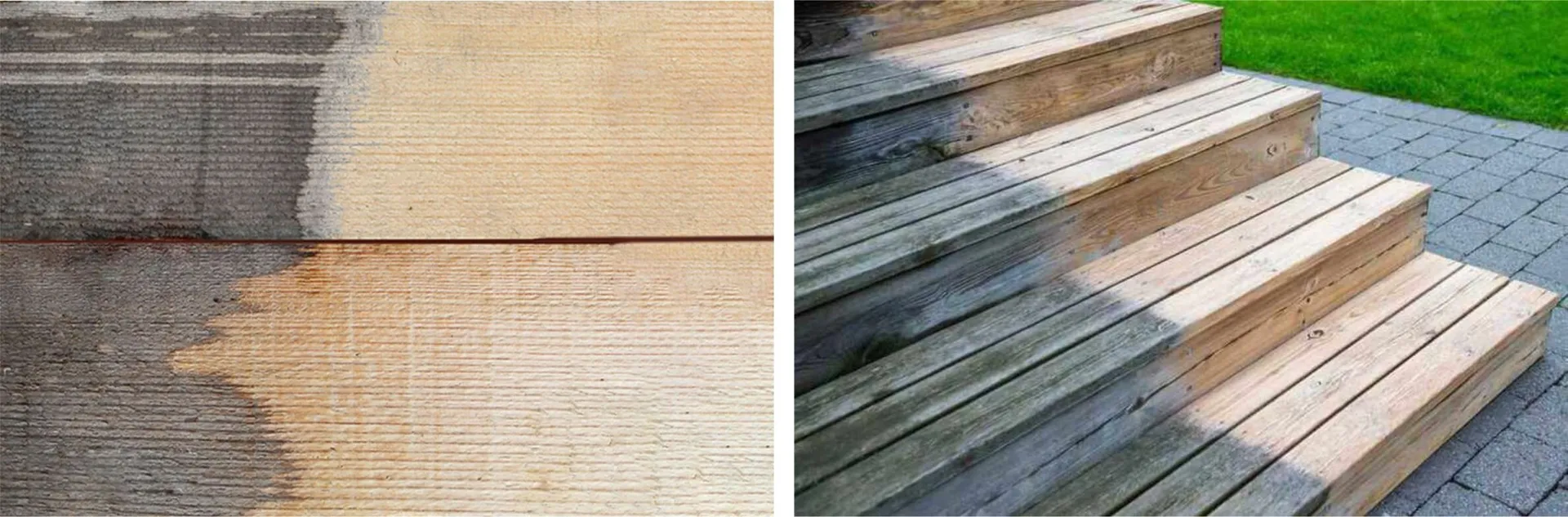 1. Химическое отбеливание Самый быстрый и эффективный способ — использование специальных хлорсодержащих составов, например, отбеливателя для древесины. Такие средства не только осветляют поверхность, но и дезинфицируют ее, останавливая биопоражение.