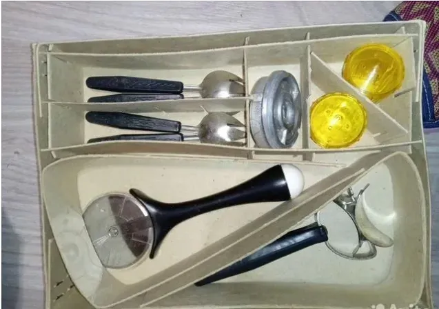 - На праздник дарят набор — для чего он?Это «пельменный набор»: вилки, ножи для теста, стаканчики для специй, диск для сочней, колпачок для мясорубки и инструкция.