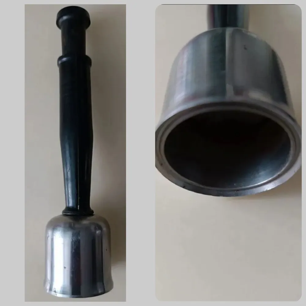 - Это не колокольчик и очень редкая вещь. Что это?Металлическая пельменница‑высечка (п‑1) для вырезания и формовки пельменей: стакан с отрезающими ободками и ручкой с толкателем — «чпок» и готово.