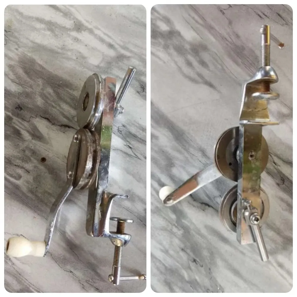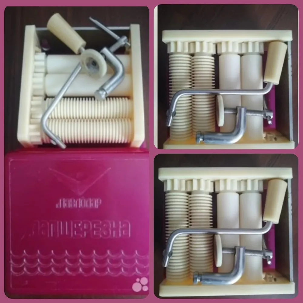 - На фото подсказка, но внешний вид — как инопланетный механизм.Это лапшерезка: валки для раскатки теста и его нарезки.