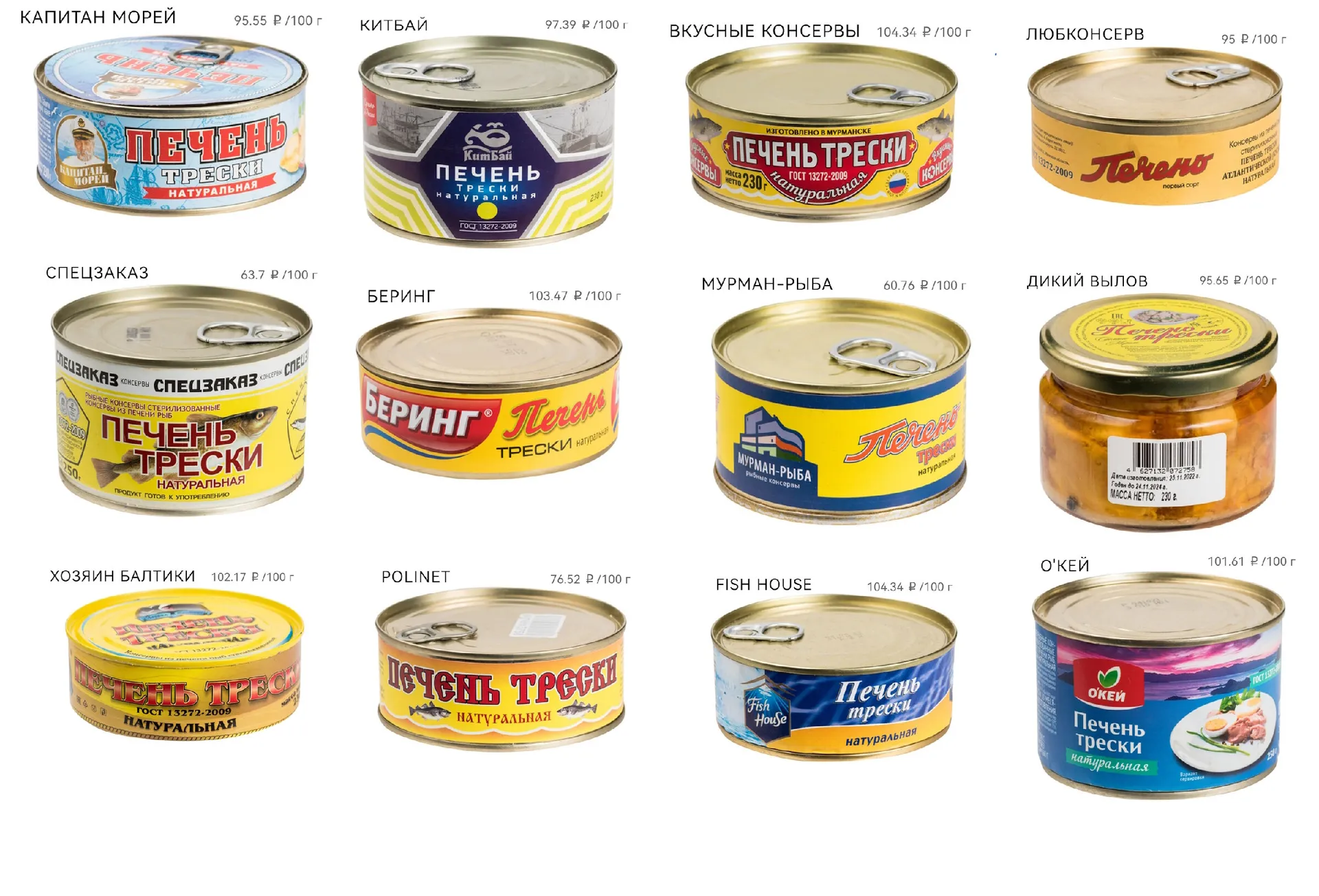 Согласно проверке, из 14 исследованных торговых марок только три содержали чистую печень трески без посторонних добавок. При этом высокая цена не является гарантией качества. Распространены случаи грубой подделки под известные бренды, а также производство не по указанному на этикетке месту.