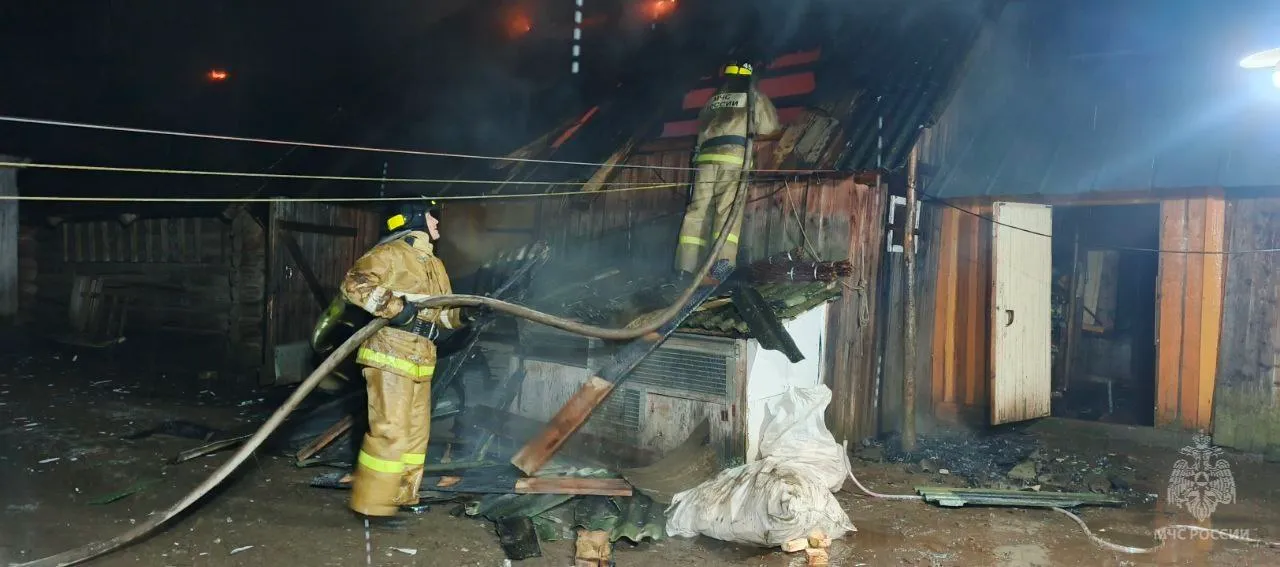 Благодаря оперативным действиям огнеборцев пожар удалось локализовать на площади 80 квадратных метров и не допустить распространения на жилой дом. В результате происшествия повреждены три хозяйственные постройки.