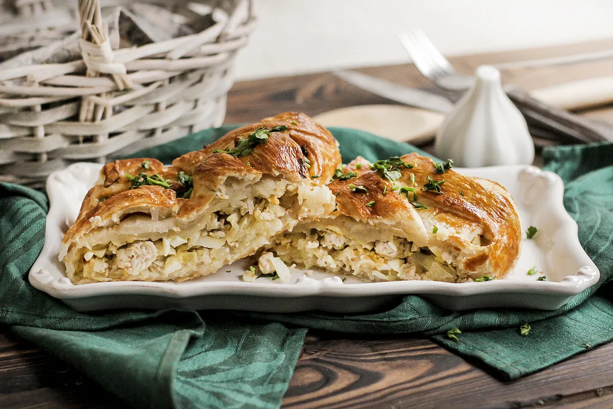 «Семейный» пирог из слоеного теста с фаршем индейки, яйцом, луком и белокочанной капустой: делюсь тайным рецептом