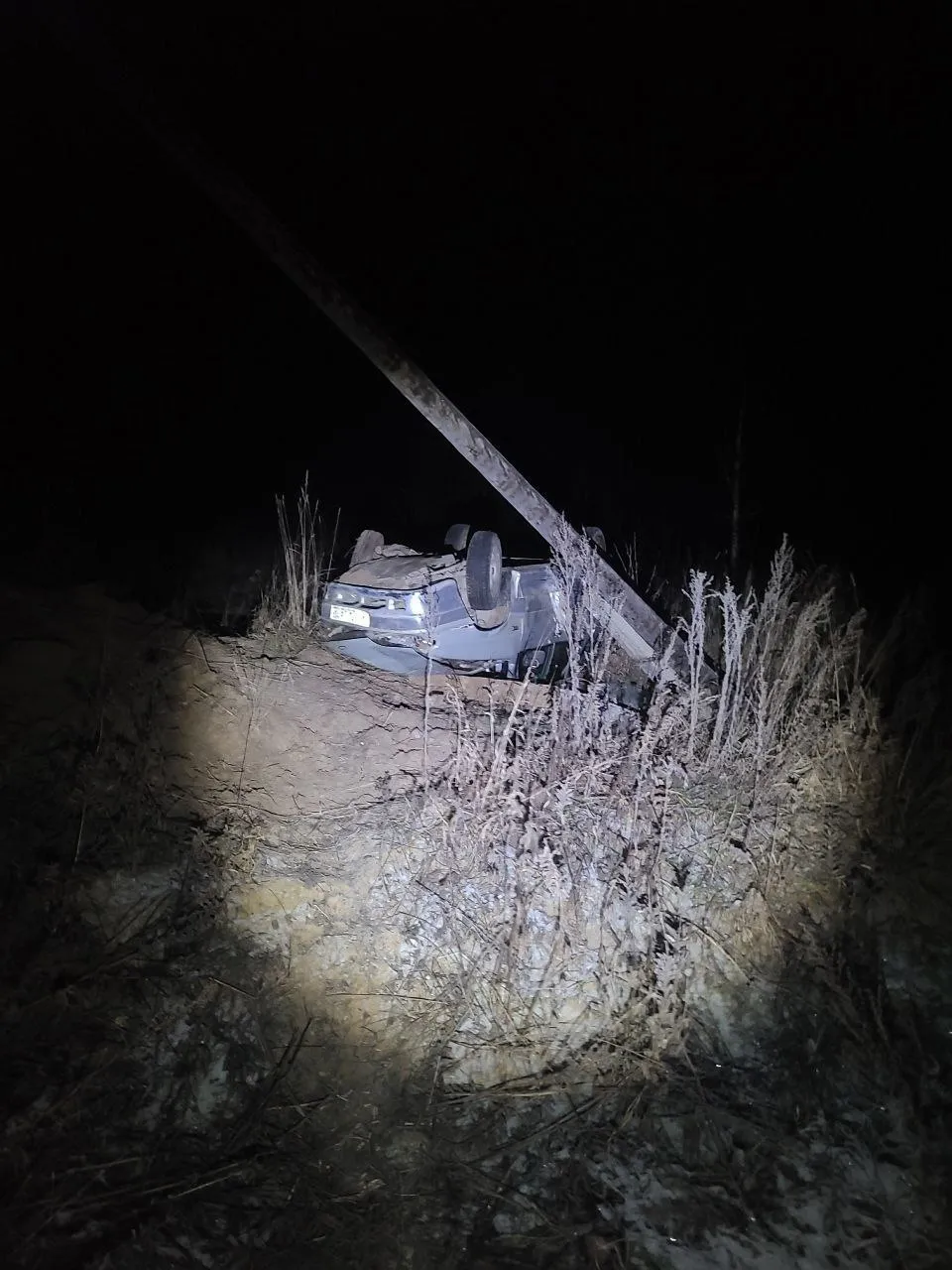 По предварительной информации, водитель автомобиля ВАЗ-2115, находясь в состоянии сильного алкогольного опьянения, не справился с управлением. Автомобиль съехал в придорожный кювет и врезался в опору линии электропередачи.