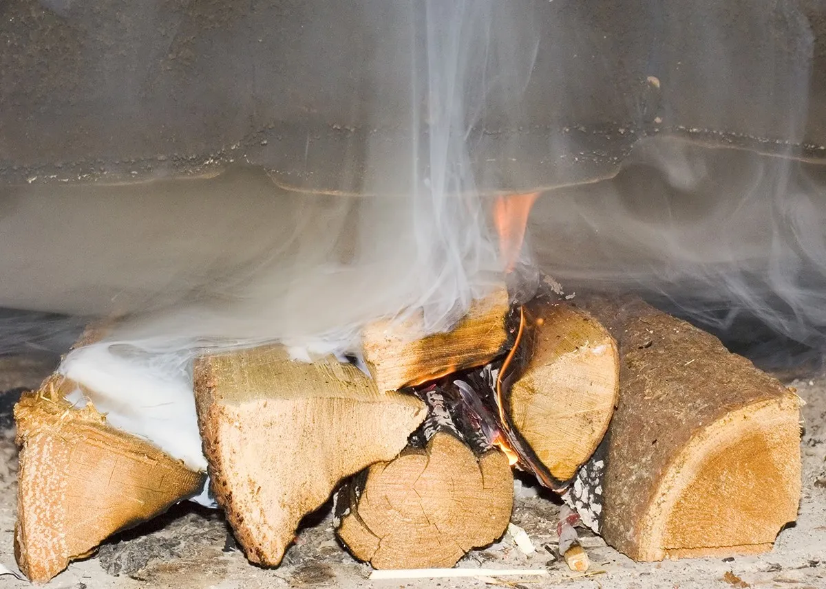 - Использование сырых дров. Влажное топливо (например, непросушенная береза) при сгорании выделяет много водяного пара. Эта влага, смешиваясь с продуктами горения, оседает на стенках дымохода плотным, трудноудаляемым налетом.