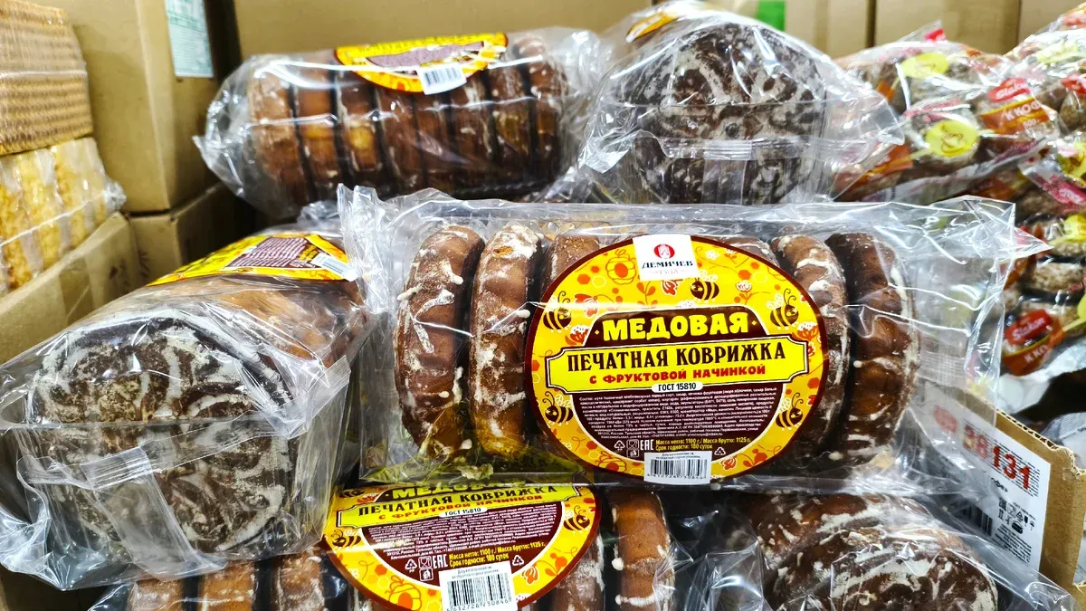 Среди новых поступлений — печатная коврижка «Медовая» с фруктовой начинкой весом 1,1 кг по цене 244,4 рубля, позиционируемая как натуральное лакомство к чаю. Также поступила крупная партия яблок с Краснодарского края по 109 рублей за килограмм и цитрусовые: мандарины по 122,8 руб./кг и помело по 109 руб./кг.