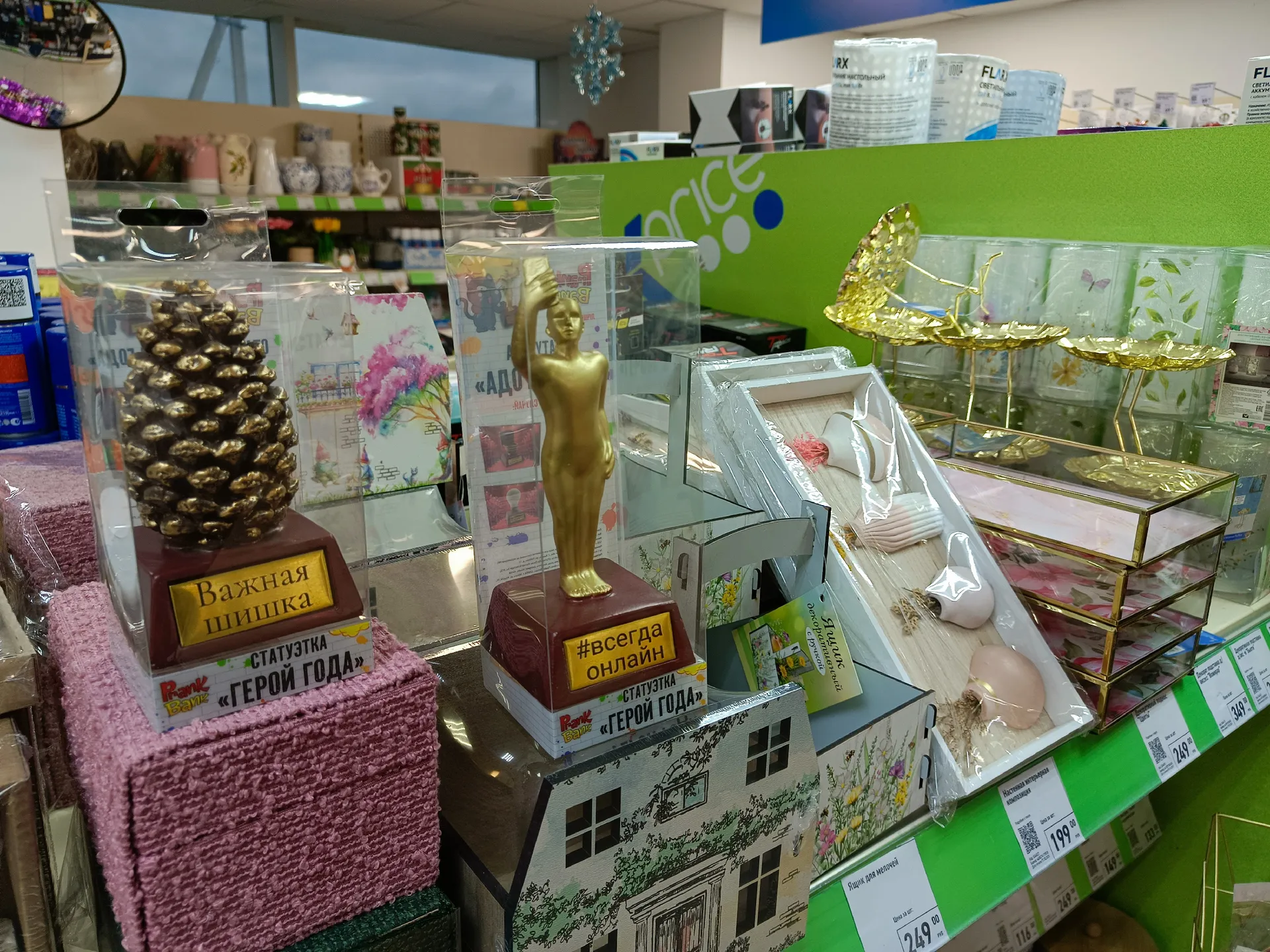 Среди новогодних сувениров выделяются юмористические статуэтки «Герой года» и «Важная шишка» за 249 рублей, которые могут стать основой для весёлой церемонии награждения. Также в продаже уже появился символ 2026 года — стильная фигурка лошади (99 рублей) и рождественская жестяная коробка для подарков (79 рублей).
