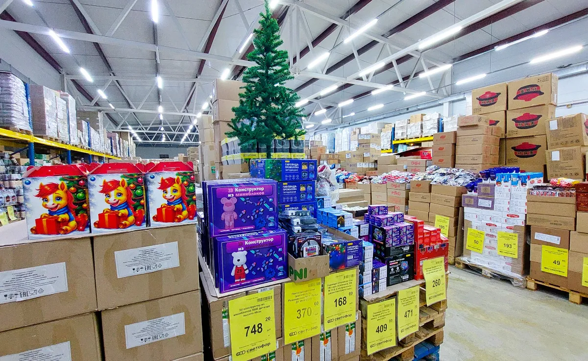 В Светофоре повсюду чувствуется приближение новогодних праздников! И не только елка в торговом зале открыто намекает на это своим видом, но даже и в холодильном отделении праздник заметен по товарам на паллетах!