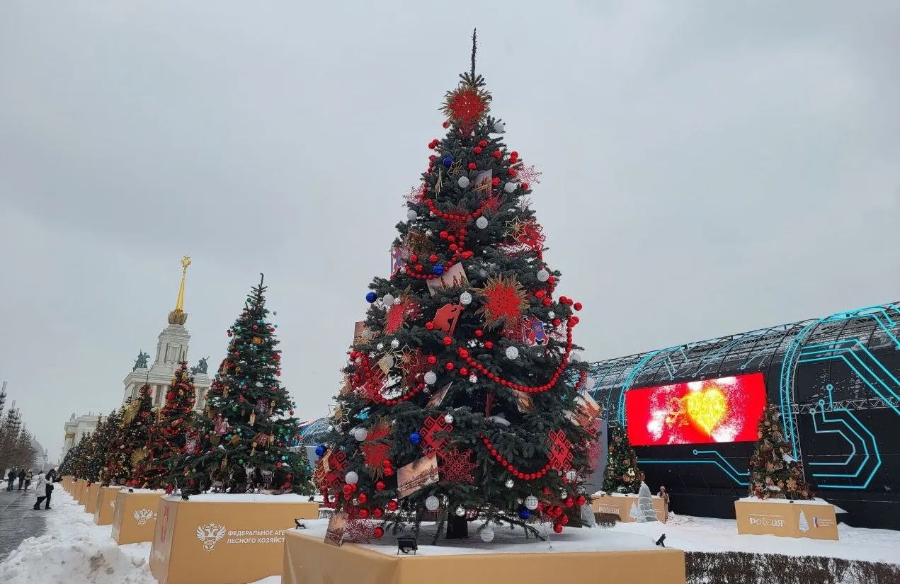 Ёлка Марий Эл с гербом и лосями украсила ВДНХ в Москве