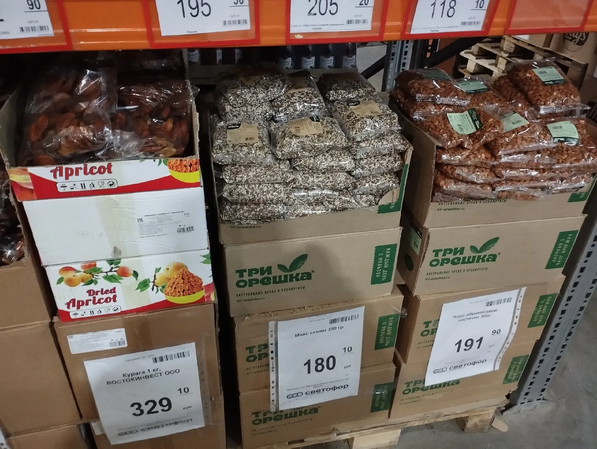 - Смесь для салатов. Не ожидала найти здесь ассорти из льна и семечек. Раньше брала в супермаркете маленькую пачку за 60 рублей, которой хватало на два салата. Здесь же за 180 рублей — целых 350 граммов. Купила сразу несколько. Также за 329 рублей можно взять килограмм качественной кураги.