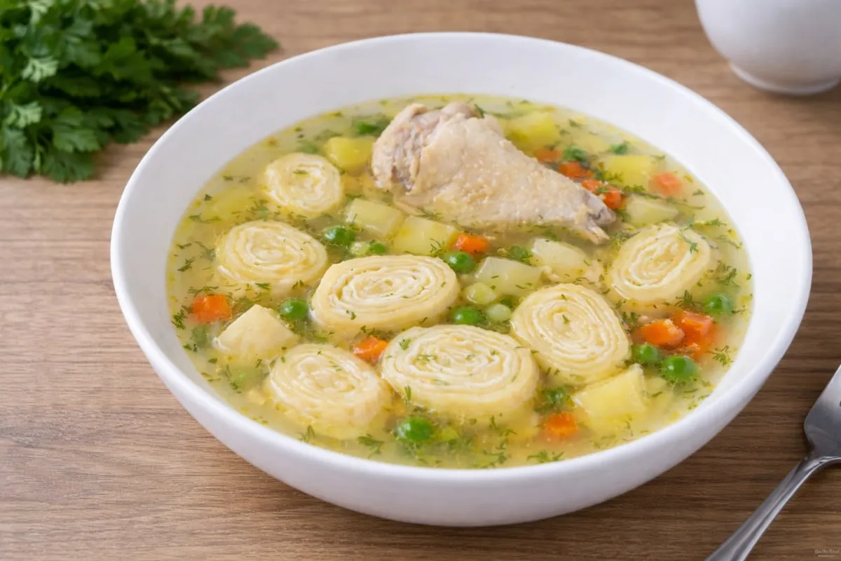 Иногда самое уютное и домашнее блюдо получается из самых простых продуктов. Яркий пример — наваристый куриный суп с нежными сырными рулетиками. Это блюдо сочетает в себе привычный вкус, аппетитный вид и лёгкость в приготовлении.