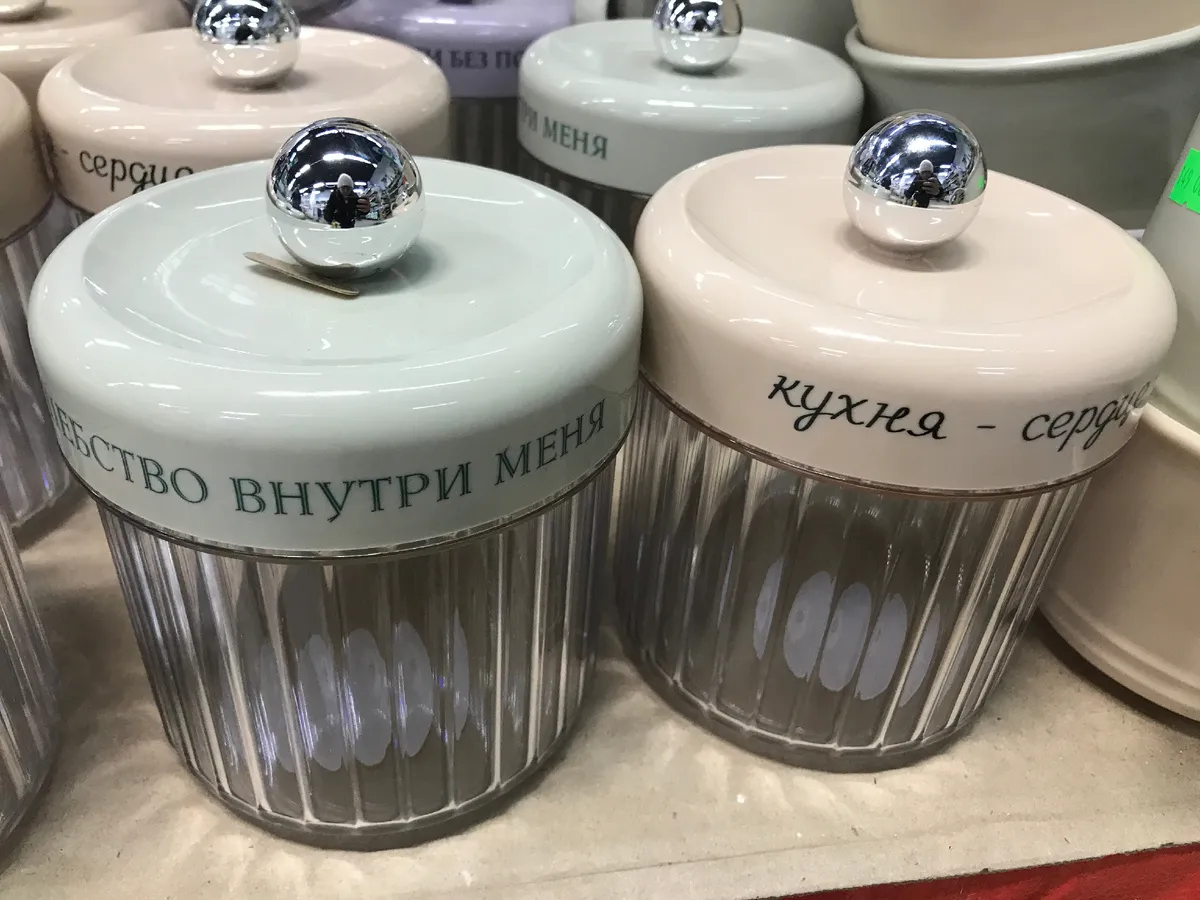 Кухонные новинки Среди новинок — практичная пластиковая банка объёмом 920 мл для хранения круп и сладостей по цене 175 рублей. Также в продаже появились керамические подставки под ложку из коллекции «Зимний рассвет» (149 рублей) и удобный органайзер для чайных пакетиков за 175 рублей.